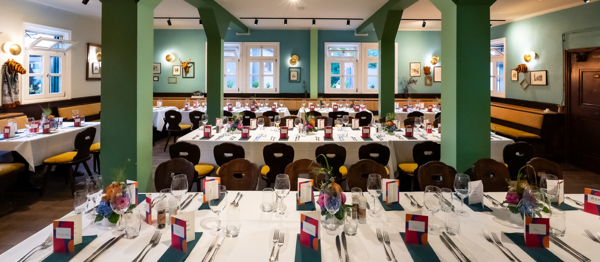 - Location und Dekoration: Miete der Eventlocation, Saalmiete oder Raumbuchung, sowie passende Deko-Artikel (Blumen, Beleuchtung, Firmenbanner etc.).